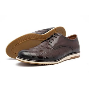 Sapato Casual Oxford Masculino Em Couro Quadriculado Pinhão