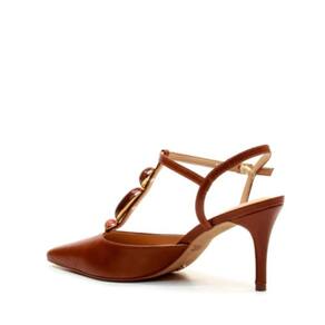 clássico com um toque contemporâneo, este scarpin slingback em couro marrom é a escolha ideal para ocasiões que pedem sofisticação com personalidade. o design de bico fino alonga a silhueta e confere elegância instantânea, enquanto a tira central com pedrarias em tons terrosos e acabamento dourado adiciona um toque de glamour na medida certa.