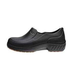 Calçado ocupacional confeccionado em EVA, leve e flexível e de fácil higienização. Palmilha higiênica Soft Comfort com planta macia de extremo conforto e alta absorção de impacto, proteção 360º e sistema contra derrapagens e solado Full Grip antiderrapante.