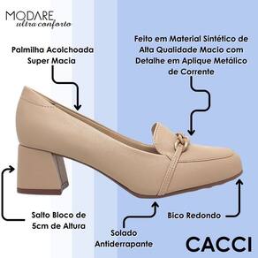 Feito em material sintético de alta qualidade, o sapato ainda se destaca pelo detalhe em aplique metálico no cabedal, que remete a uma corrente delicada e acrescenta um toque de sofisticação ao visual. Essa é a opção ideal para quem deseja unir beleza, conforto e praticidade em um único calçado, perfeito para mulheres que valorizam elegância sem abrir mão do conforto no dia a dia.