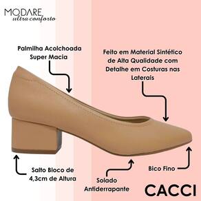O sapato Modare é a escolha certa para quem busca sofisticação com um toque de conforto que faz toda a diferença. Seu salto bloco de 4,3cm proporciona a altura ideal para alongar a silhueta com segurança e estabilidade, sendo perfeito para te acompanhar da rotina de trabalho a eventos mais elegantes. A palmilha acolchoada super macia garante o aconchego que seus pés merecem, mesmo após horas de uso.