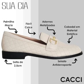 O clássico loafer ou mocassim como também é conhecido, ressurge na coleção Sua Cia, em material napa soft repaginado com o adorno em dourado no cabedal - detalhe que dá todo um charme delicado ao modelo. Atemporal e muito confortável é uma aposta certeira para deixar qualquer produção mais sofisticada!