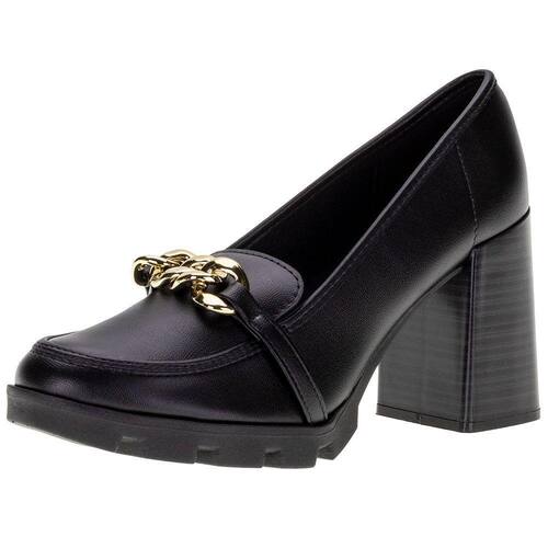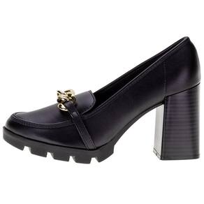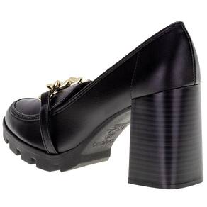 O Sapato Feminino Mocassim Beira Rio é confeccionado em Napa Turim com acabamento em costura, detalhe em corrente no cabedal, forro interno em têxtil, palmilha em PU e solado em borracha de alta qualidade com salto grosso de nove centímetros e meio.