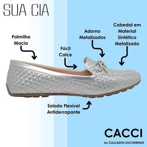 Sapato Feminino Mocassim Slip On Laço Metalizado Sua Cia - Prata - 35