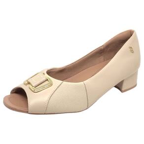 Peep toe cabedal em couro napa valise e tecido para joanetes. O modelo possui tecnologia Menor Impacto, proporcionando amortecimento no calcanhar e na planta do pé, oferecendo conforto principalmente para pessoas com esporão de calcâneo e metatarsalgia.