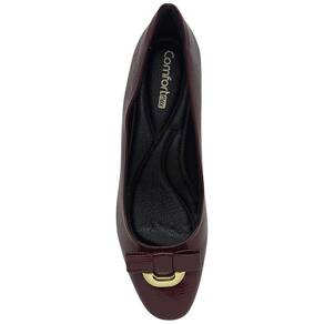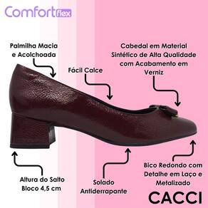 Com um visual sofisticado e conforto excepcional, este sapato feminino da ComfortFlex combina praticidade com elegância. O cabedal é feito em material de alta qualidade com acabamento brilhante, trazendo um toque refinado ao modelo. O bico redondo é suavizado por um delicado laço com detalhe metalizado, que valoriza ainda mais o design.