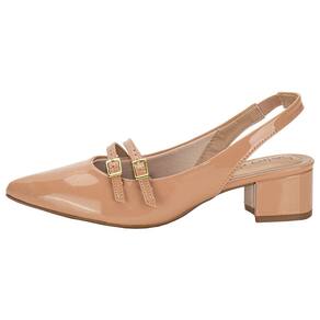 O Sapato Feminino Salto Grosso Beira Rio é confeccionado em material envernizado com acabamento em costura, fechamento por fivela de ajuste, forro interno em têxtil, palmilha em PU e solado em borracha antiderrapante com salto baixo de cinco centímetros.