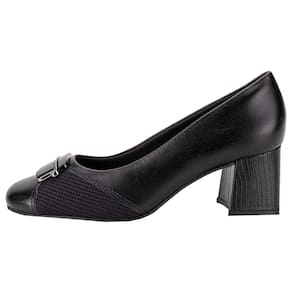 Sapato Feminino Salto Grosso ComfortFlex 2475302 com salto grosso de 6,5 cm aproximadamente. Feito em couro, com acabamento colado/costurado, palmilha em PU e sola de borracha. Material têxtil exclusivo nas laterais da parte frontal proporciona ajuste confortável.