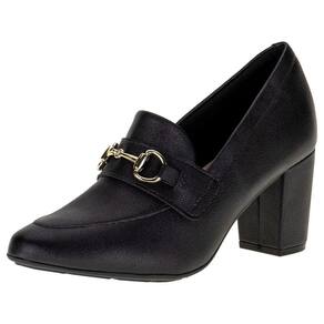 O Sapato Feminino Salto Grosso Modare é confeccionado em Napa Floather Nature com detalhe metalizado no cabedal, acabamento em costura, forro interno em têxtil, palmilha Ultracomfy e solado em borracha com salto de sete centímetros e meio.
