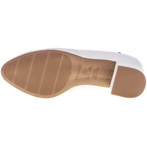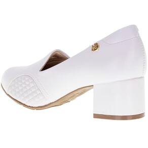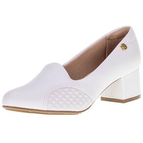 O Sapato Feminino Salto Grosso Modare é confeccionado em Napa Sense Flex com acabamento em costura, forro interno em têxtil, palmilha em PU e solado em borracha antiderrapante com salto de cinco centímetros e meio.