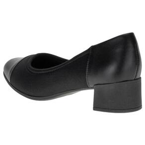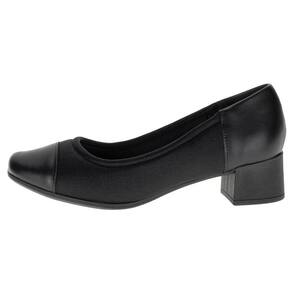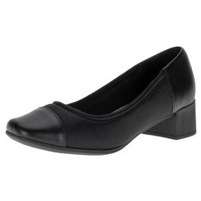 O Sapato Feminino Salto Grosso Usaflex é confeccionado em tecido maleável com detalhes em couro, acabamento em costura, forro interno em têxtil, palmilha em PU e solado em borracha antiderrapante com salto de quatro centímetros e meio.