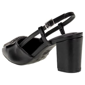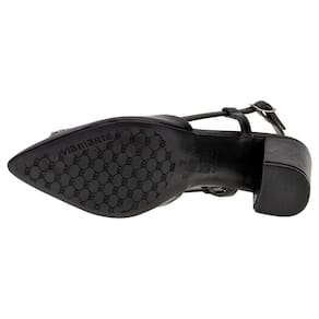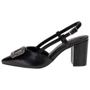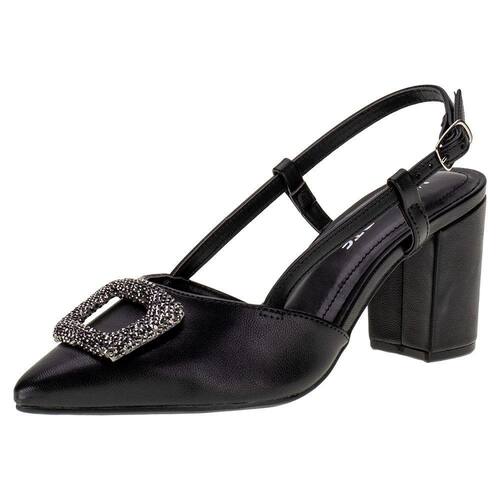 O Sapato Feminino Salto Grosso Via Marte é confeccionado em Napa de alta qualidade com detalhe de strass no cabedal, fechamento por fivela de ajuste, palmilha em PU e solado em borracha com salto alto de nove centímetros de altura.