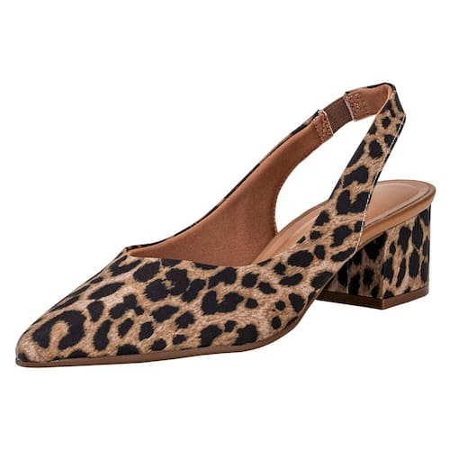 O Sapato Feminino Salto Grosso Vizzano é desenvolvido em Cetim Onça Clássica, material de excelente qualidade, forro em têxtil, com tira no calcanhar em elástico. A palmilha acolchoada é em PU e o solado em borracha com salto grosso de seis centímetros.