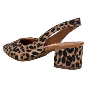 O Sapato Feminino Salto Grosso Vizzano é desenvolvido em Cetim Onça Clássica, material de excelente qualidade, forro em têxtil, com tira no calcanhar em elástico. A palmilha acolchoada é em PU e o solado em borracha com salto grosso de seis centímetros.