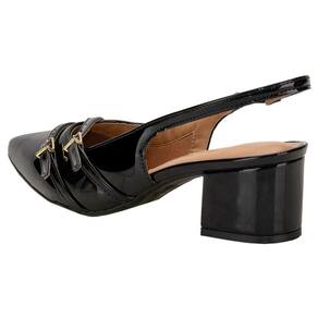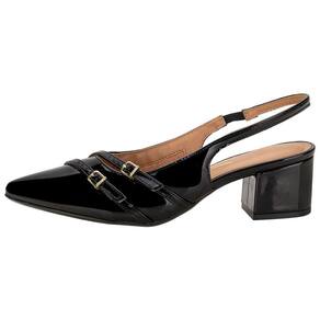 O Sapato Feminino Salto Grosso Vizzano é confeccionado em material Premium envernizado com acabamento em costura, forro interno em têxtil, palmilha em PU e solado em borracha com salto baixo de seis centímetros.