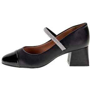 O Sapato Feminino Salto Grosso Vizzano é confeccionado em Pelica com detalhe de strass, acabamento em costura, forro interno em têxtil, palmilha em PU e solado em borracha antiderrapante com salto de cinco centímetros e meio.