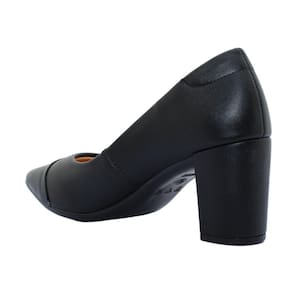 Este sapato é confeccionado com material sintético, a palminha é extremamente aconchegante além de ter espuma no calcanhar para garantir o conforto ao seu caminhar. O solado é emborrachado com salto bloco de 7,5cm, super leve e flexível. O estilo Scarpin traz o charme e elegância, o destaque está no bico fino com detalhe de uma tira dividindo as texturas do cabedal, tornando este calçado com um design único, contém ainda a logo marca ?S? em metal na lateral. Este produto é ideal para as suas ocasiões mais especiais, certificando um estilo elegante e único para o seu look.