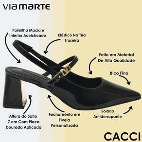 O acabamento em verniz preto traz aquele brilho elegante que transforma qualquer produção, seja ela clássica ou ousada. Esse slingback é ideal para looks de alfaiataria com calça cropped ou pantalona de cintura alta, dando um toque fashionista ao visual profissional. Para eventos ou saídas noturnas, ele fica incrível com vestidos midi, saias envelope ou até mesmo peças com brilho — criando um contraste sofisticado com o verniz. É o tipo de sapato que une charme e versatilidade, perfeito para quem sabe que o estilo começa pelos pés.