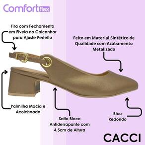 Sua palmilha macia e acolchoada proporciona um calce suave, ideal para rotinas agitadas e longos períodos em pé, tornando o modelo excelente para trabalhar, sair ou eventos que exigem um visual mais elaborado. O salto bloco com quatro centímetros e meio de altura oferece a elevação ideal sem abrir mão da estabilidade, enquanto o solado antiderrapante proporciona segurança em cada passo, mesmo em superfícies lisas. Seja com vestidos fluidos, saias midi, peças de alfaiataria ou jeans, esse slingback se adapta com facilidade ao seu estilo. Um clássico repaginado com muito conforto, pensado para acompanhar você em todos os momentos.