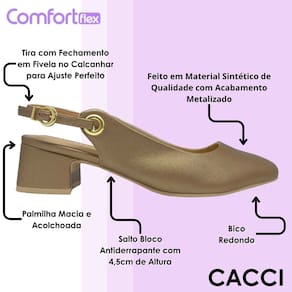 Sua palmilha macia e acolchoada proporciona um calce suave, ideal para rotinas agitadas e longos períodos em pé, tornando o modelo excelente para trabalhar, sair ou eventos que exigem um visual mais elaborado. O salto bloco com quatro centímetros e meio de altura oferece a elevação ideal sem abrir mão da estabilidade, enquanto o solado antiderrapante proporciona segurança em cada passo, mesmo em superfícies lisas. Seja com vestidos fluidos, saias midi, peças de alfaiataria ou jeans, esse slingback se adapta com facilidade ao seu estilo. Um clássico repaginado com muito conforto, pensado para acompanhar você em todos os momentos.