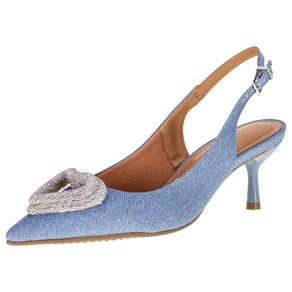 O Sapato Feminino Vizzano é confeccionado em Jeans Glam de alta qualidade com detalhe de coração com strass no cabedal, fechamento por fivela de ajuste calcanhar, forro interno em têxtil, palmilha em PU e solado em borracha com salto de seis centímetros.