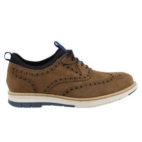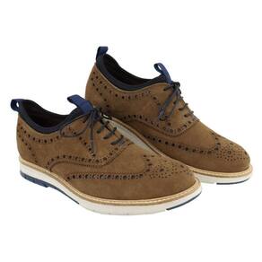 Sapato Masculino Oxford Couro Camurça Fechamento Cadarço Detalhe Perfurações Solado TR Confortavel - 44 - Marrom