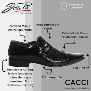 Possui um fino acabamento em textura no cabedal dando um visual super sofisticado e apresenta fechamento por meio de elásticos nas laterais para melhor calce.