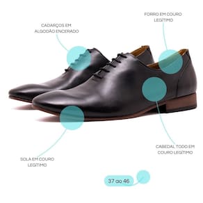 ACONSELHAMOS A COMPRAR SEU NÚMERO HABITUAL O Sapato Social Wholecut em 100% couro é a definição de sofisticação e exclusividade. Com design minimalista e refinado, este modelo é esculpido a partir de uma única peça de couro, garantindo um acabamento impecável, sem costuras visíveis, e uma presença marcante em qualquer ocasião. Feito para homens exigentes, o Wholecut une estilo atemporal, durabilidade e conforto premium. Seu interior é forrado com materiais nobres e respiráveis, oferecendo bem-estar absoluto mesmo em longos períodos de uso. Já o solado leve, com excelente aderência, proporciona segurança e estabilidade até nos ambientes mais elegantes. Disponível até o número 46, esse modelo se ajusta perfeitamente a diferentes perfis, entregando uma experiência de uso superior e um visual inconfundível. Seja no ambiente de trabalho ou em eventos formais, o Wholecut é um verdadeiro símbolo de bom gosto e distinção masculina. MATERIAIS Confeccionado: Couro Forro: Couro Palmilha: Tecido espumado Sola: Couro Numeração ? 37 ao 46 Marca: Não Informado