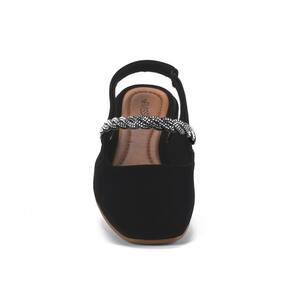 O Sapato Mississipi Strass Feminino Preto é confeccionado em material sintético de alta qualidade, apresenta um design minimalista com uma tira com aplicação de brilho, adicionando um toque de sofisticação ao calçado. O modelo chanel possui tiras elásticas na parte traseira para melhor fixação, garantindo conforto e segurança ao caminhar. A palmilha confortável e o forro têxtil macio proporcionam conforto durante todo o dia, enquanto o solado emborrachado com salto de aproximadamente 2cm de altura oferece estabilidade e segurança.
