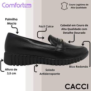 O salto anabela de 3,5 cm proporciona leve elevação com apoio firme, ideal para quem deseja caminhar com mais segurança e sem abrir mão do conforto. Além disso, o formato do bico arredondado favorece o encaixe natural dos pés, evitando desconfortos mesmo após horas de uso.
