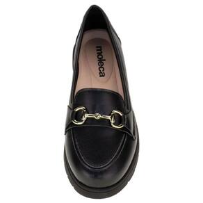 Sapato Mocassim Moleca Casual Conforto Detalhe Metalizado Anabela Preto 346945