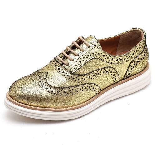 Sapato Oxford Feminino Camurça Com Cadarço Casual Salto Baixo Palmilha EVA - 36 - Amarelo Ouro