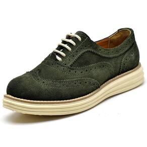 Sapato Oxford Feminino Camurça Com Cadarço Casual Salto Baixo Palmilha EVA - 34 - Verde Musgo