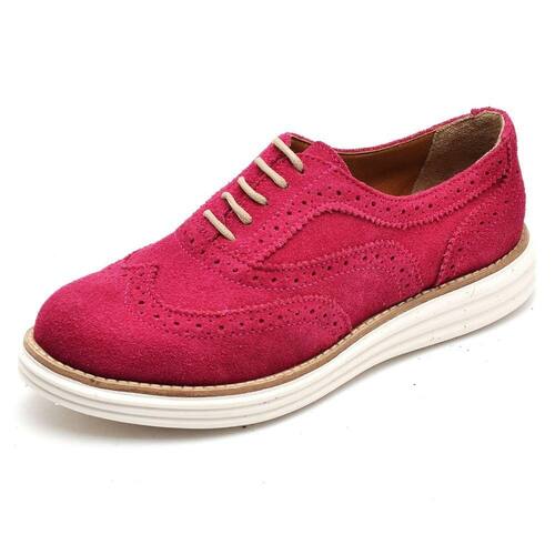 Sapato Oxford Feminino Camurça Com Cadarço Casual Salto Baixo Palmilha EVA - 35 - Rosa