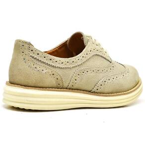 Sapato Oxford Feminino Camurça Com Cadarço Casual Salto Baixo Palmilha EVA - 36 - Bege
