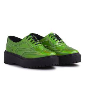 Sapato Oxford Feminino Tratorado Metalizado Clássico - 39 - Verde