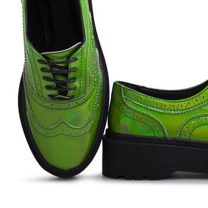 Sapato Oxford Feminino Tratorado Metalizado Clássico - 34 - Verde