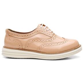 Sapato Oxford Feminino Verniz Com Cadarço Casual Salto Baixo Palmilha EVA - 34 - Bege
