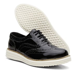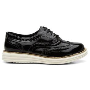 Sapato Oxford Feminino Verniz Com Cadarço Casual Salto Baixo Palmilha EVA - 37 - Preto
