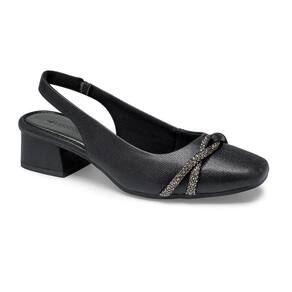 A tira sem fechamentos que envolve o calcanhar de forma suave, garante um calce fácil e rápido. A textura discreta presente em toda a superfície do sapato adiciona um toque de sofisticação, enquanto a tira frontal com detalhes em brilho confere um charme especial e um toque de luminosidade ao visual. O salto bloco de 4 cm oferece estabilidade e conforto ao caminhar, além de alongar a silhueta e garantir um porte elegante.