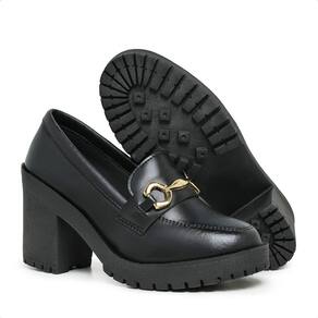 Sapato Salto Médio Mocassim Tratorado Slip On Bridão Preto
