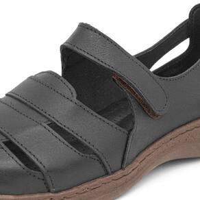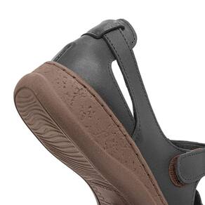 Sapato Sandalia Conforto Fechado Couro Feminino Tira Autocolante Solado Borracha Resistente - 40 - Preto