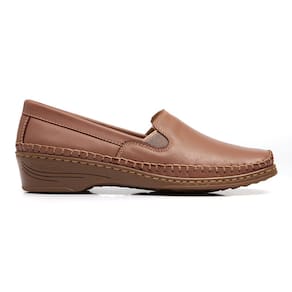 Sapato Sapatilh Mocassi Feminin Couro Marrom Confort Ortopé - Marrom - 37