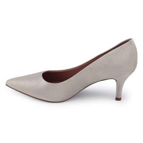 O Sapato Scarpin da Vizzano 1185.702 é maravilhoso, um sapato confortável e com um salto da altura ideal para calçar o dia todo. Seu cabedal é fabricado em material sintético e glitter ou têxtil jeans, é um modelo de bico fino, na lateral traz como detalhe um broche da marca, seu interior é todo revestido em material têxtil e sua palmilha é fixa em material sintético acolchoado tornando o sapato confortável. O seu salto é baixo, com acabamento em verniz e tem 6,5cm de altura, o solado possui frisos para maior segurança.