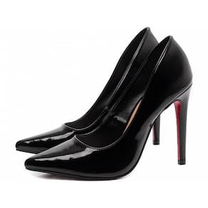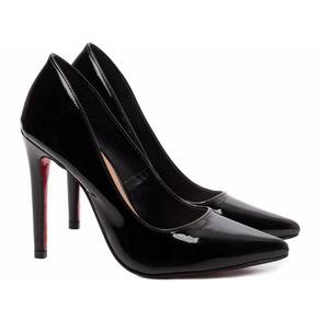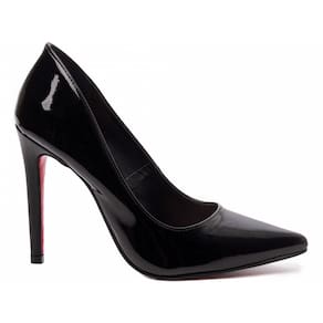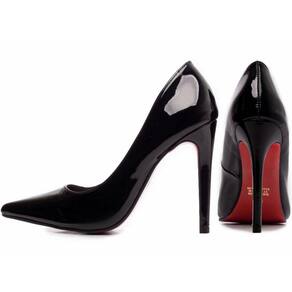 Salto: 12 cm de Altura Revestido em Verniz Preto.