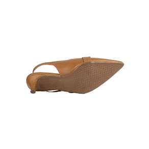 O estilo slingback, que deixa o calcanhar à mostra, garante um visual moderno e sofisticado, ideal para compor looks formais ou casuais refinados.