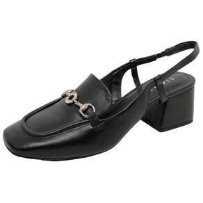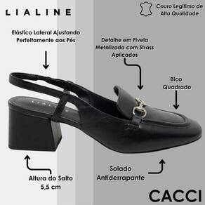O modelo em Couro Cristal Lia Line Slingback quase sempre fechado na dianteira, mas aberto atrás recebe esse nome pela tira elástica (ou afivelada) na parte posterior facilitando o calce e se encaixando perfeitamente aos pés e que envolve o calcanhar. Possui peça metalizada com strass no cabedal trazendo todo o charme para o calçado.