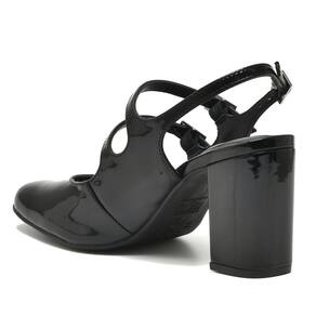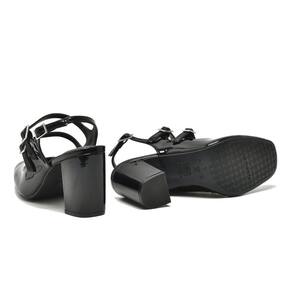 Sua modelagem combina a parte do calcanhar aberta com a parte da frente fechada, criando uma estética equilibrada e refinada.