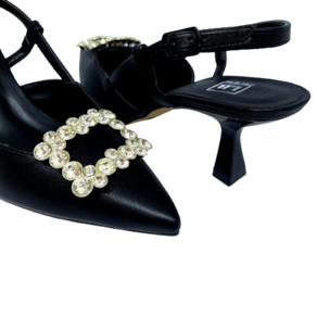 Experimente o charme e a sofisticação do nosso Sapato Slingback Preto de Bico Fino com Fivela. Com uma fivela deslumbrante adornada com pedrarias, este sapato é a escolha ideal para quem busca um toque de elegância em qualquer ocasião, inclusive festas. Seu salto de aproximadamente 7 cm, com uma curvatura cuidadosamente projetada, oferece não apenas estilo, mas também estabilidade e conforto incomparáveis. Fabricado com materiais de alta qualidade, este slingback é perfeito para completar seu look com classe e confiança. Eleve seu estilo e aproveite cada passo com nosso Sapato Slingback Preto Bico Fino com Fivela.