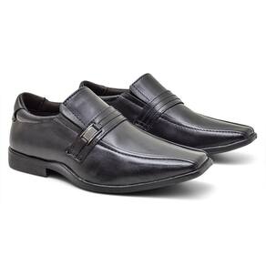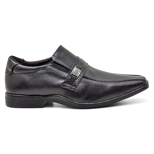 Sapato Social Infantil Kids Preto Couro Masculino Elastico Elegante Fino Fork - 20 - Preto